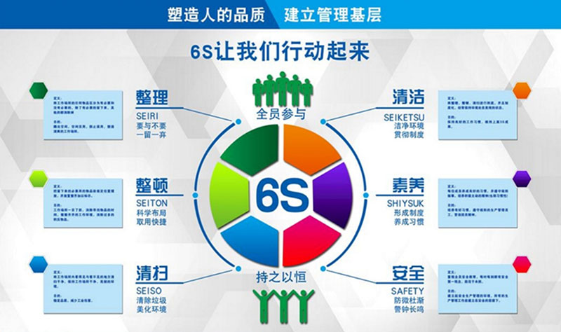 6S就是整理(SEIRI)、整頓(SEITON)、清掃(SEISO)、清潔(SEIKETSU)、素養(yǎng)(SHITSUKE)、安全(SAFETY)六個項目,因均以“S”開頭,簡稱6S。
