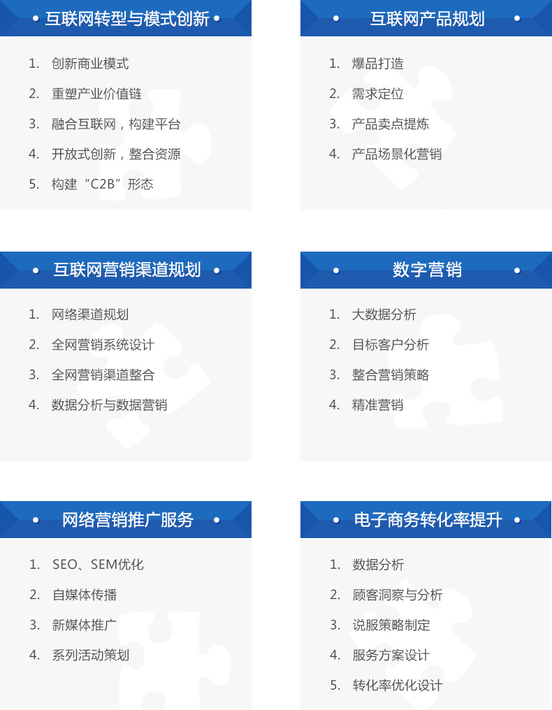 根據(jù)行業(yè)及企業(yè)互聯(lián)網(wǎng)需求,為企業(yè)提供競(jìng)爭(zhēng)對(duì)手及行業(yè)互聯(lián)網(wǎng)營(yíng)銷分析,幫助企業(yè)定位互聯(lián)網(wǎng)營(yíng)銷戰(zhàn)略,搭建適合自身及行業(yè)發(fā)展的互聯(lián)網(wǎng)營(yíng)銷系統(tǒng)及執(zhí)行落地計(jì)劃。互聯(lián)網(wǎng)營(yíng)銷執(zhí)行計(jì)劃(網(wǎng)絡(luò)營(yíng)銷的落地執(zhí)行)。